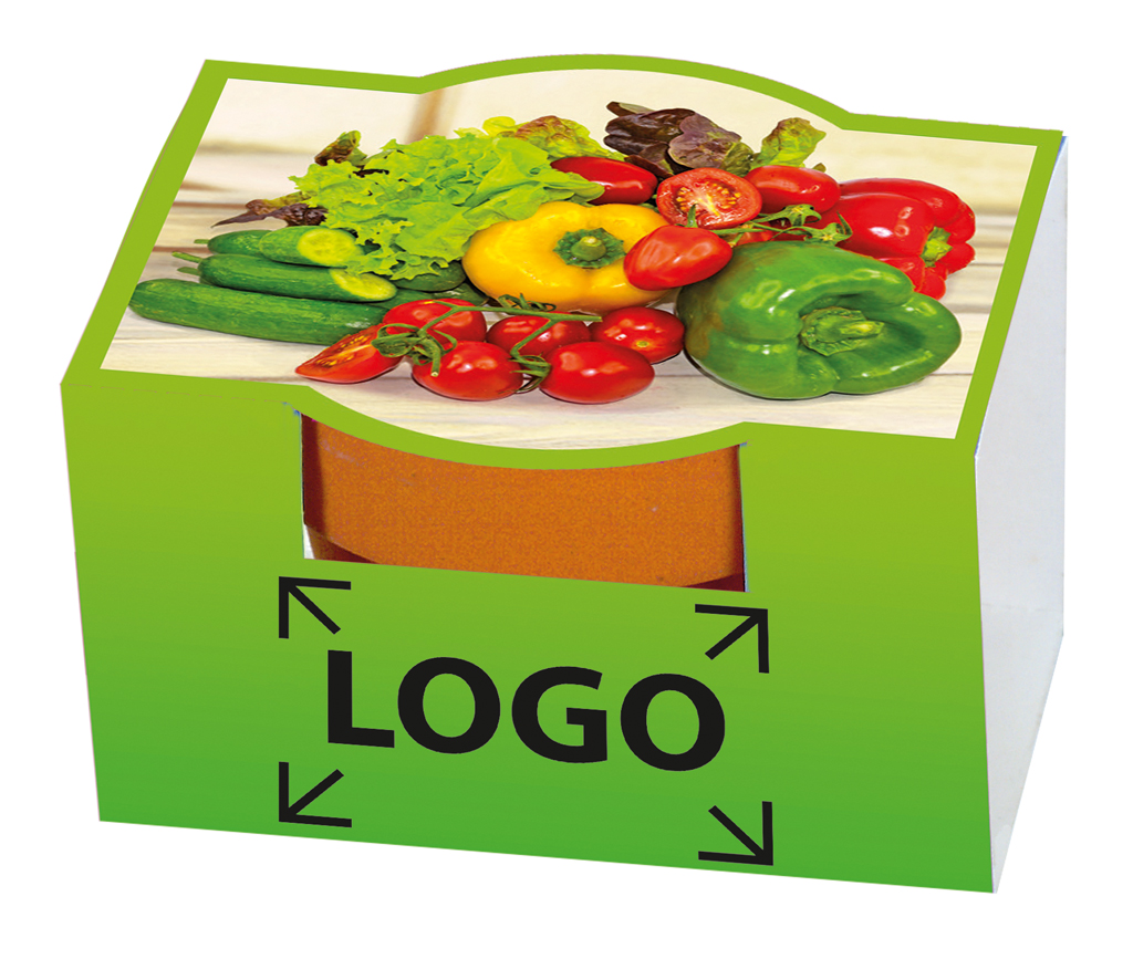 Beschreibung: Gemüse zum Naschen - Im kleinen Tontopf kann der Samen der Paprika-Pflanze angezüchtet werden. Das Standardmotiv der Banderole bietet viel Platz für Ihre Werbeanbringung ab 250 Stück. Auch eine eigene Gestaltung der Banderole ist ab 250 Stück möglich.