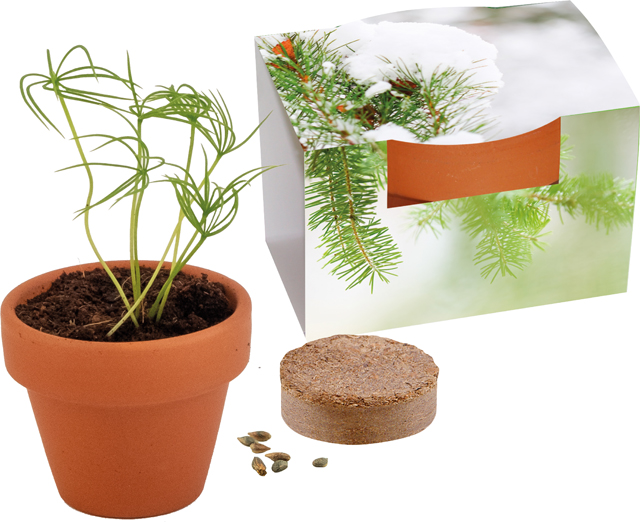 Inhalt: Tontöpfchen Ø 4 cm, Erdtablette, Samen: Fichte