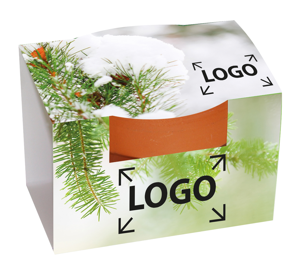 Beschreibung: Blumig, sonnig, frisch. Das kleine Tontöpfchen mit Erdtablette und Fichte-Samen. Die Banderole bietet auf der Vorderseite einen sichtbaren Platz für Ihre Werbebotschaft. Direkt auf dem Tontöpfchen ist ein Aufdruck im Tampondruck möglich. Eine Gestaltung der Banderole ab 250 Stück.