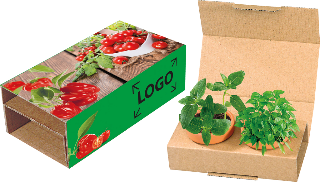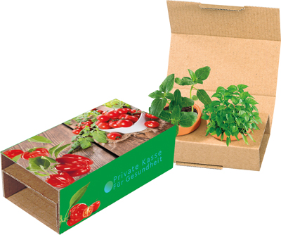 Beschreibung: Zwei Gemüsesorten, die zum gesunden Naschen einladen. Cocktailtomate und Paprika. Ein gelungenes Duo für wachsende Partnerschaften. Auf dem Standardmotiv der Banderole ist ausreichend Platz für Ihren Werbeeindruck. Auch eine eigene Gestaltung der Banderole ist ab 250 Stück möglich.