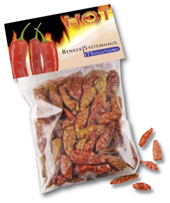 Beschreibung: Scharfe Argumente mit den Chili-Schoten für Ihre Präsentationen. Auch andere Gewürze sind möglich.Ihr Werbeeindruck im Standardmotiv ist auf dem