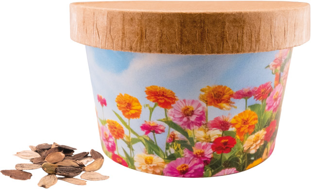 Beschreibung: Unser Blumen Cup ist ein farbenfrohes und charmantes Giveaway, das Ihre Kunden garantiert begeistert. Die leuchtenden Zinnienblüten setzen wunderschöne Akzente auf jedem Balkon und in jedem Blumenbeet. Setzen Sie Ihre Werbebotschaft wirkungsvoll in Szene – mit Ihrem Logo oder einem individuellen Design auf der Banderole, bereits ab 250 Stück
