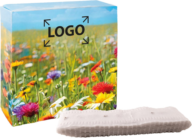 Beschreibung: Meter für Meter ein buntes Blütenmeer. Ein sympathisches Giveaway für Ihre Kunden. Das Saatband einfach auf Blumenerde setzen und wässern. Schon bald zeigen sich die ersten grünen Spitzen. Auf dem Standardmotiv der Packung ist Platz für Ihren Werbeeindruck. Eine eigene Gestaltung ist ebenfalls bereits ab 250 Stück umsetzbar.
