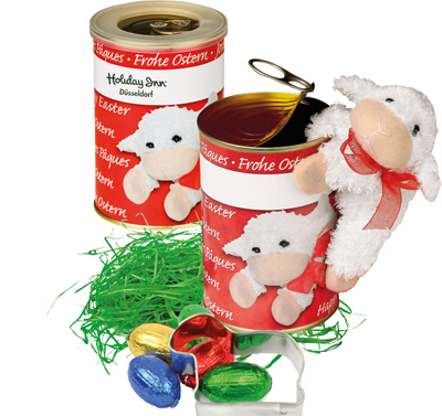 Beschreibung: Die handliche Dose mit Aufreißdeckel verbirgt österliche Überraschungen. Der Anziehungspunkt ist das magnetische Lämmchen, das überall auf Metall seinen Platz findet. Für Ihren Werbeeindruck in das Standardmotiv bietet die umlaufende Banderole Platz.Alternativ ist eine eigene Gestaltung der Banderole ebenfalls ab 250 Stück möglich.