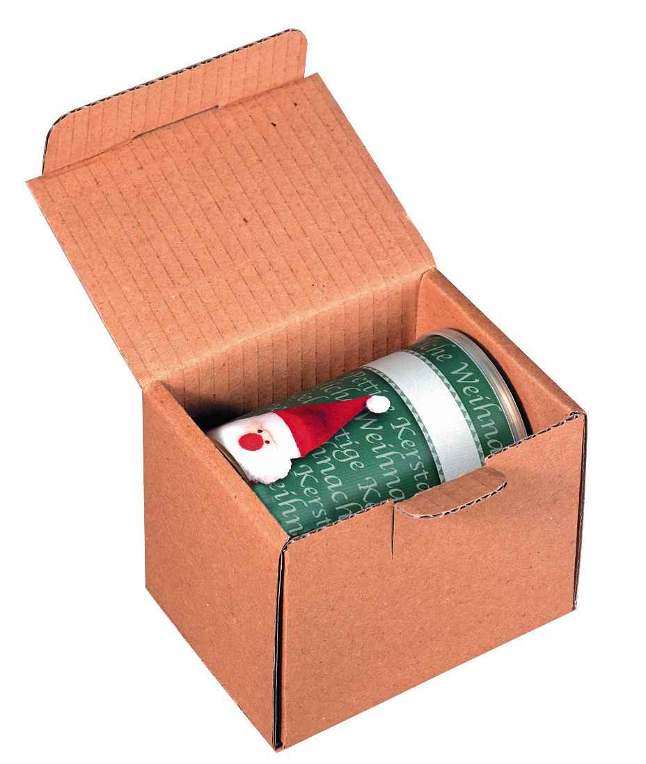 Beschreibung: Einzelversandkartonage für Dosen, 135 x 95 x 110 mm