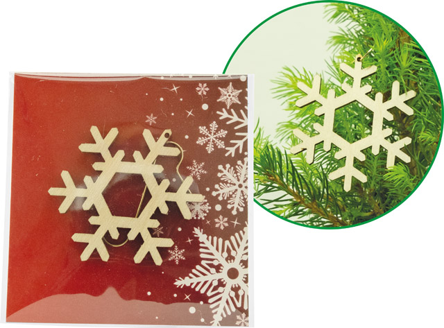Inhalt: Holzornament Schneeflocke (ca. 50 mm), Aufhänger