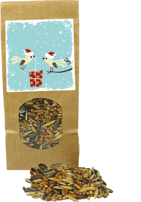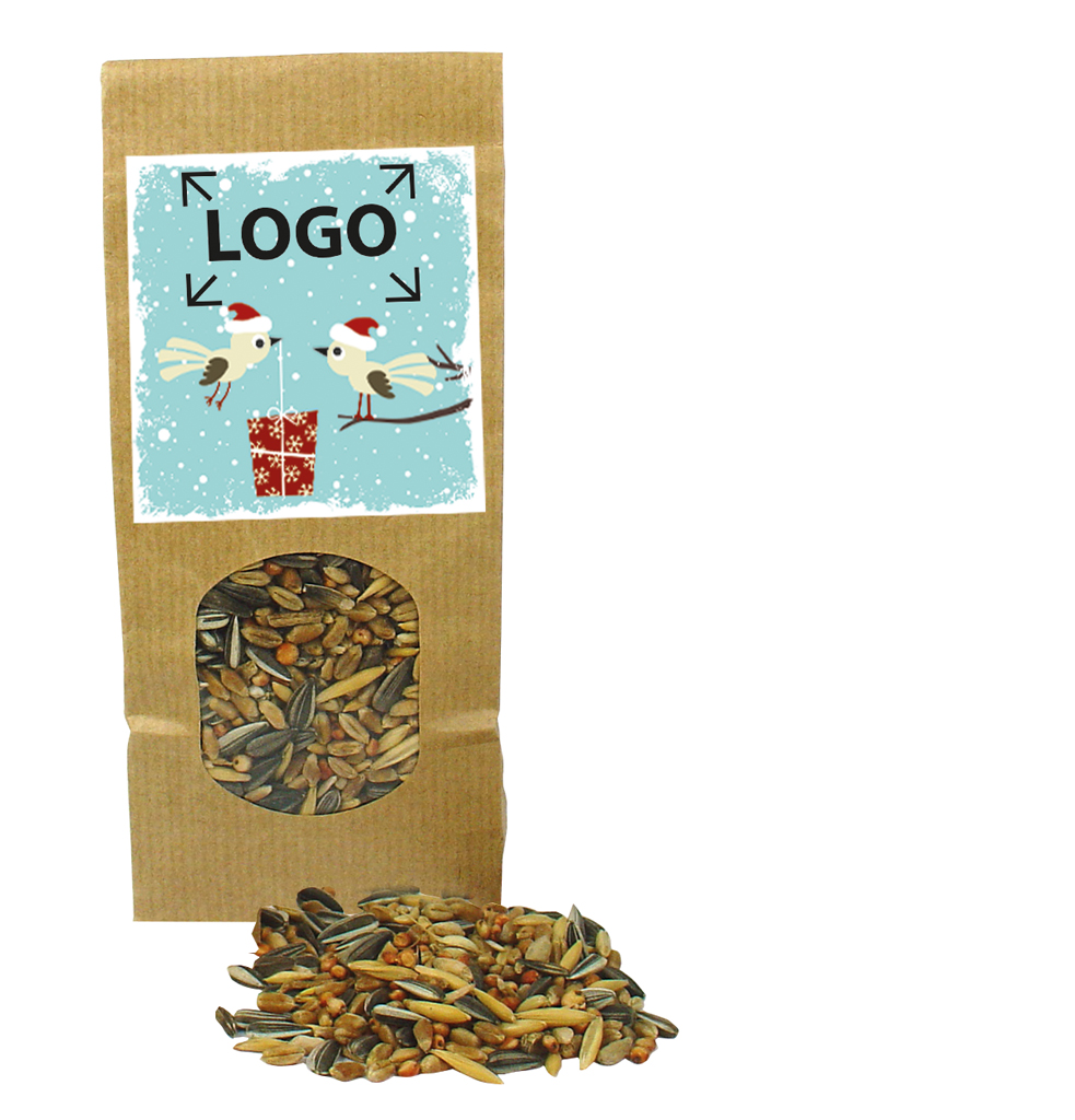 Beschreibung: Ein Werbegeschenk für jeden Vogel-Liebhaber. Die Tüte enthält ca. 150 g Wildvogel-Futter, welches die Vögel in der kalten Jahreszeit dankend annehmen und bei Schnee und Eis dringend benötigen. Es ist immer wieder schön, die Vögel in der Winterzeit zu beobachten. Platz für den Werbedruck ist auf dem Standardmotiv des Etiketts oder eine eigene Gestaltung des Etiketts, jeweils bereits ab 250 Stück.