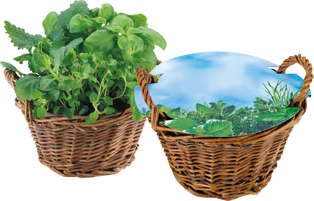 Beschreibung: Alles für das direkte Wachstum der Pflanzen aus dem Korb. Im Natur-Weidenkörbchen mit Henkel sind Erde, Pflanzanleitung und Samen eingelegt. Werbeaufdruck auf dem Standardmotiv oder eine eigene Gestaltung der Abdeckung, jeweils ab 250 Stück.