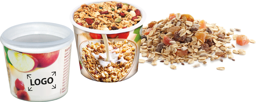 Beschreibung: Fit in den Tag starten. Eine kleine Portion Fitness bietet unser Müsli 2Go. Die umlaufende Banderole bietet viel Platz für Ihre Werbeaussage. Eine eigene Gestaltung der Banderole ist ebenfalls ab 250 Stück möglich.