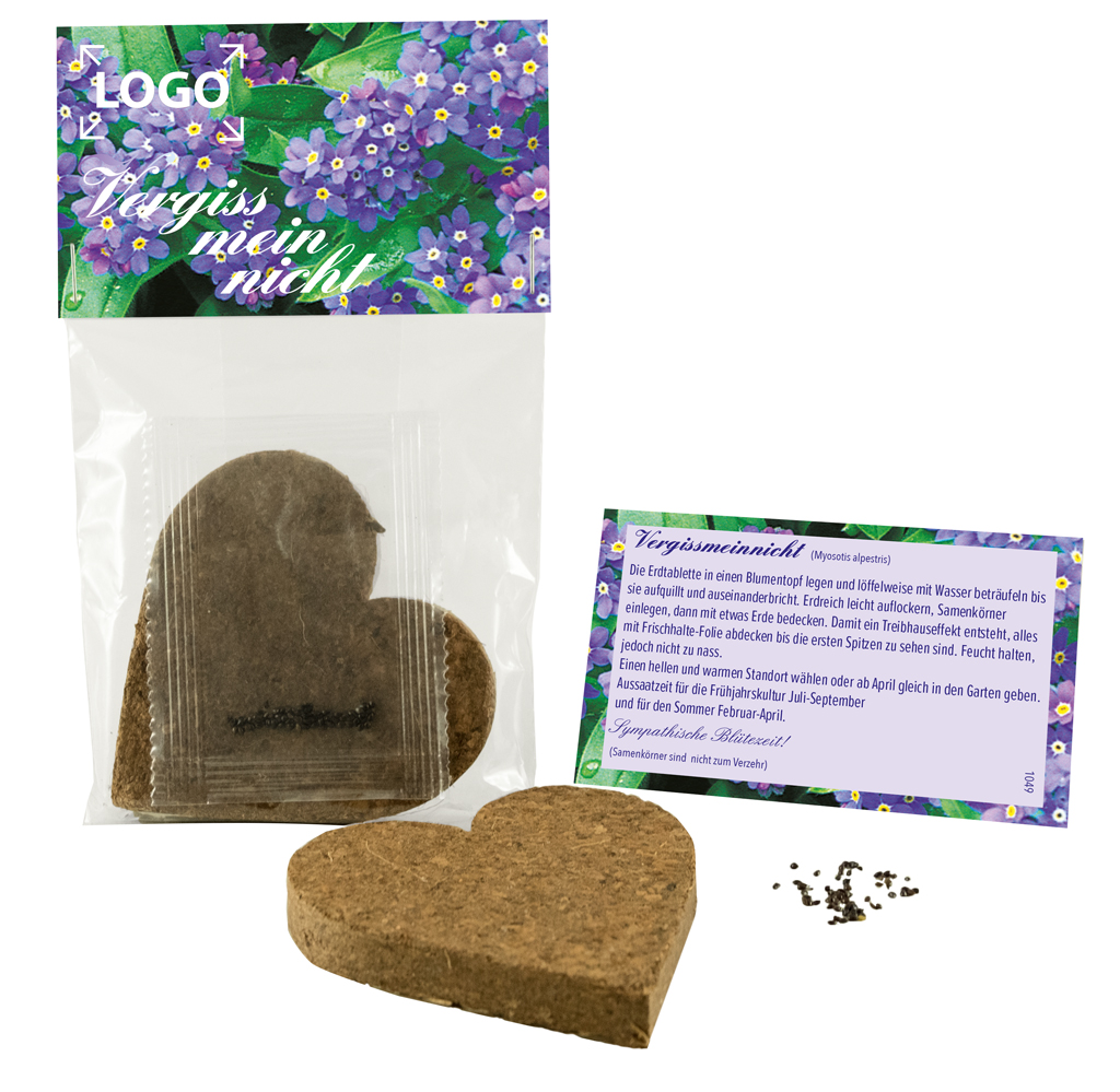 Inhalt: Erdtablette Herz, Samen: Vergissmeinnicht