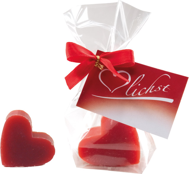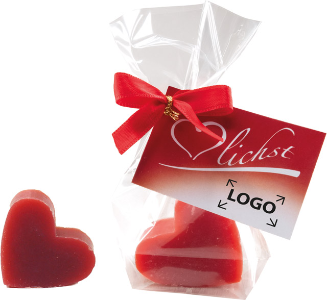 Beschreibung: Das formschöne Herz besteht aus hochwertiger Schafmilchseife. Der Granatapfelduft macht es zu einem besonders attraktiven kleinen Werbepräsent. Auf der Anhängekarte kann der Werbeeindruck erfolgen. Eine individuelle Gestaltung ist ebenfalls ab 250 Stück möglich.