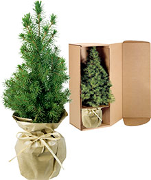 Beschreibung: Eine lebende Zuckerhutfichte 20 - 30 cm, verpackt in einer Einzelversandkartonage, als kleines Bäumchen zu Weihnachten. Klassisch und dekorativ versetzt diese Zuckerhutfichte jeden Raum in eine weihnachtliche Stimmung. Das Bäumchen kann auf Wunsch von uns direkt an einzelne Empfänger versendet werden. Ganz natürlich wurde dieses Bäumchen nur mit Naturpapier und Bastband geschmückt. Ein Werbeeindruck kann auf unserem Anhängekärtchen Artikel 6202 (40 x 60 mm) ab 100 Stück erfolgen oder auf einer Beilage nach Wunsch. Zudem steht als Werbefläche ein separater Schuber, Art.-Nr. 4199-8, zur Verfügung.