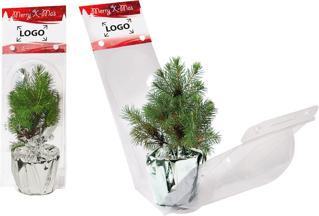 Beschreibung: Perfekt geschützt ist diese kleine lebende Zuckerhutfichte, ca. 20 cm, in der transparenten Überreich-Box. Mit einer Topfflolie und einer Schleife in silber. Eine schöne Deko für die Adventszeit und zu Weihnachten. Platz für den Werbedruck ist auf dem Standardmotiv des Headers oder eine eigene Gestaltung, jeweils ab 100 Stück.
