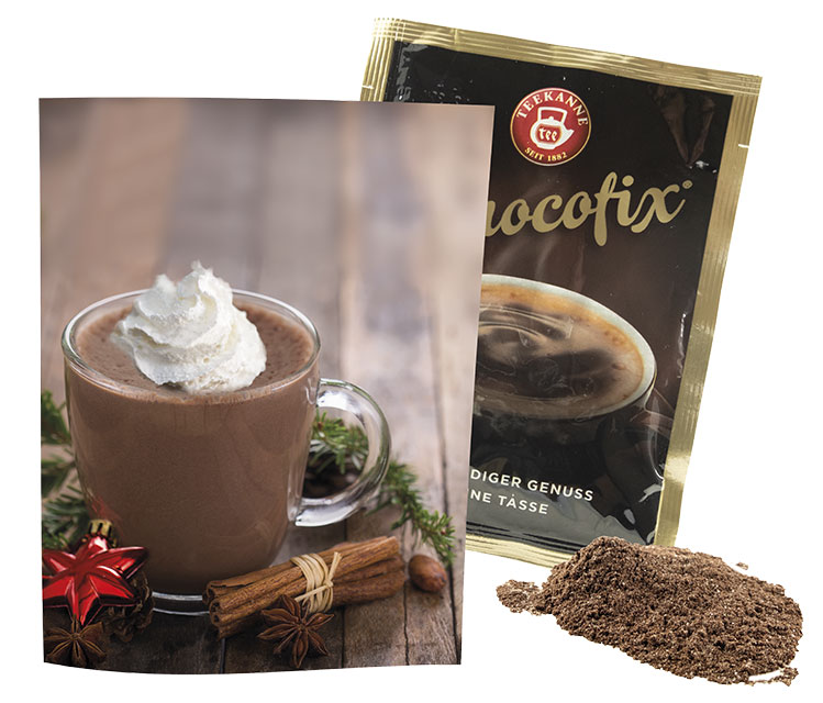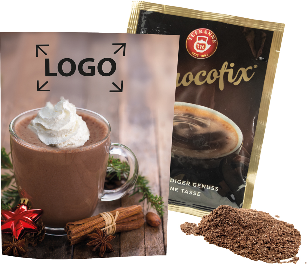 Beschreibung: Über eine Tasse heiße Schokolade in der kalten Jahreszeit freut sich jeder Kunde. Einfach mit heißem Wasser oder warmer milch genießen. Das Klappkärtchen bietet ausreichend Platz für Ihre Werbeanbringung. Eine individuelle Gestaltung ist ebenso ab 250 Stück möglich