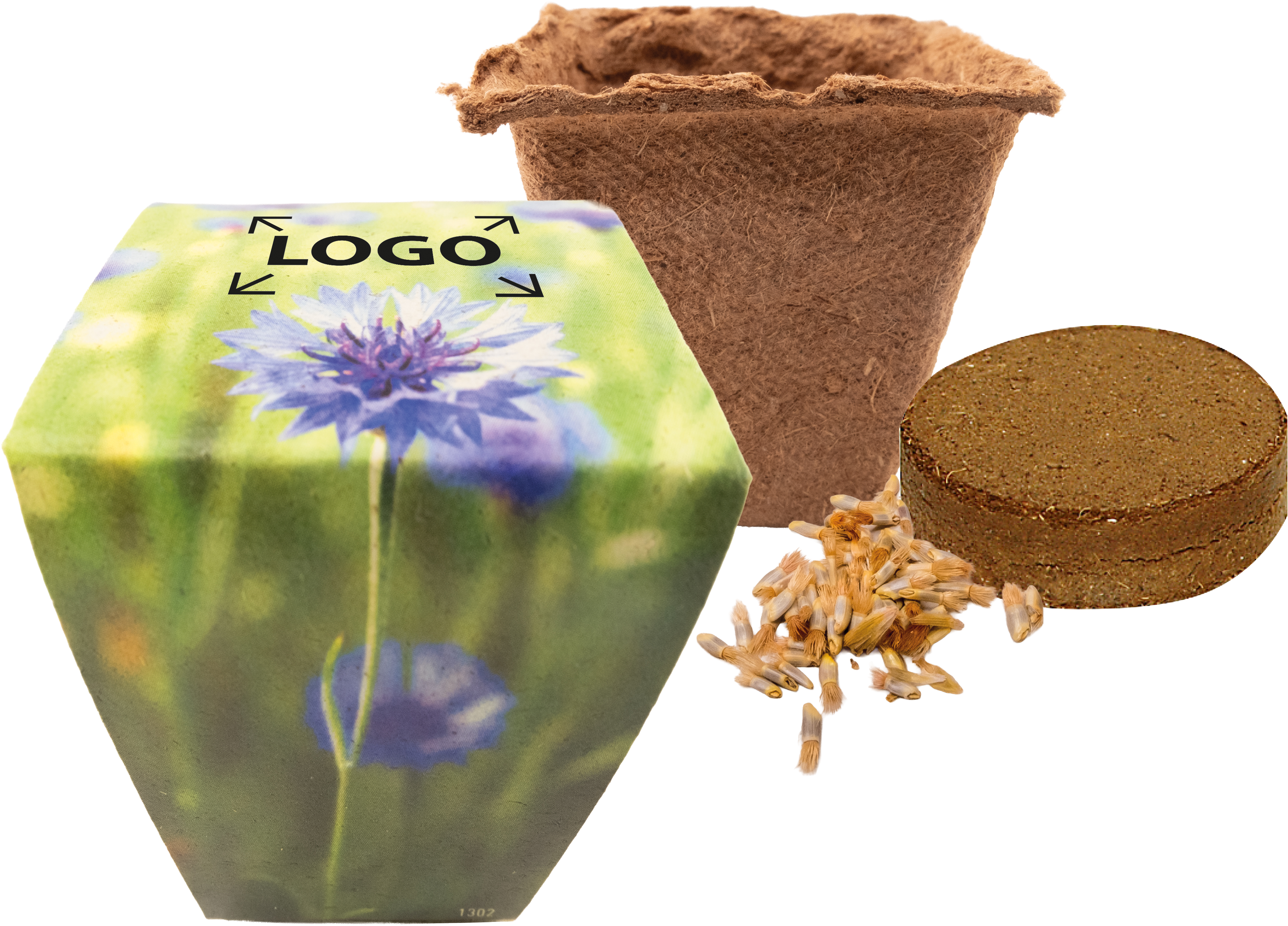 Description: Le pot naturel est un récipient idéal pour la germination et peut ensuite être planté dans la terre avec la fleur qui y apoussé, où il se décomposera complètement. Un marquage publicitaire ou une personnalisation en quadri de la bande papier est possible à partir de 250 exemplaires.