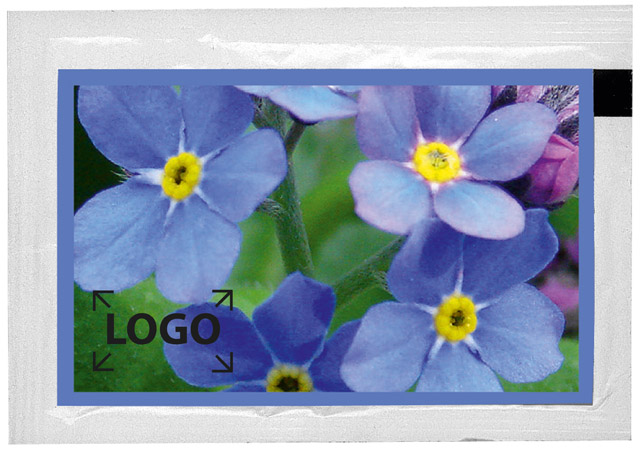 Marquage: 30x30 mm sur le motif standard du sachet à partir de 3.000 exemplaires